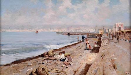 | Keywords: Giardello Strand von Neapel.jpg century 20 oil canvas cm 34 60 accession number object history credit line exhibition history lower right signature http //www duesseldorfer-auktionshaus planetactive com Düsseldorfer Auktionshaus PD-old-auto-1923 1920 Giuseppe Giardiello Naples in art People at the beach in art Images from Düsseldorfer Auktionshaus |