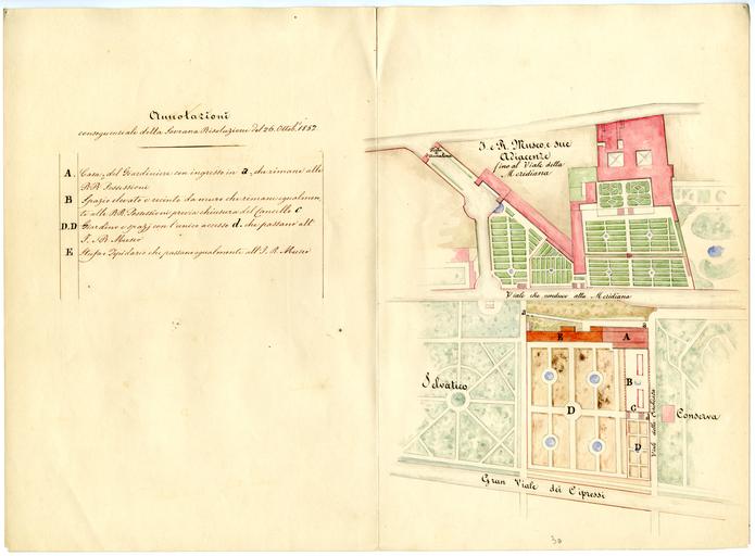 | Keywords: Giardino Botanico Reale Museo Firenze mappa.tif it Invio dal soprintendente alle Reali possessioni di una copia della perizia delle piante esistenti nella porzione del giardino di Boboli che verrĂ ceduta al Giardino botanico del Museo dietro corresponsione del relativo prezzo 21 gennaio-23 febbraio 1853 Institution Museo Galileo Archivio place of discovery object history Archivio del Reale Museo di fisica e storia naturale di Firenze Carteggio della Direzione gennaio-dicembre 1853 aff 6; c 6 m c 13 m exhibition history credit line accession number place of creation Museo Galileo PD-old 2016-06-01 own Museo Galileo other versions cc-by-sa-4 0 Boboli Gardens Maps of Florence Maps of gardens and parks Library and archives of the Museo Galileo |