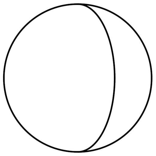 | Keywords: Gibbous-Crescent-half-ellipse-in-circle-outlined.png Gibbous-Crescent-half-ellipse-in-circle-outlined svg A circle divided into a gibbous shape left and an astronomical crescent shape right by a half-ellipse where the major axis of the ellipse coincides with a diameter of the circle According to geometry an illuminated hemisphere of a sphere will appear to take on such gibbous or crescent shapes when viewed from an angle In this case the length of the major axis of the ellipse is twice the length of the minor axis i e the eccentricity is half the square root of 3 so that the larger gibbous area shows the theoretical shape of the visible lit area of the moon for example when the separation between the viewing angle and the angle of illumination i e between Earth and Sun is 60 degrees while the smaller crescent area shows the theoretical shape of the visible lit area of a sphere when the separation between the viewing angle and the angle of illumination is 120 degrees See also Image Gibbous-Crescent-half-ellipse-in-circle png crescent shape Astronomy sketches Hemispheres |