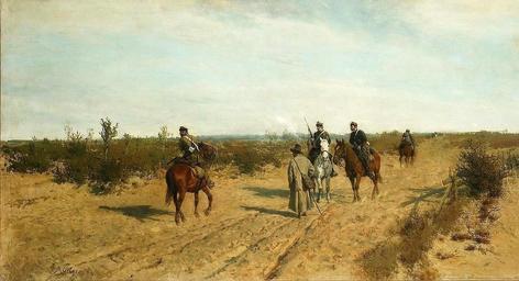 | Keywords: Gierymski Insurgent patrol.jpg Artwork Creator Maksymilian Gierymski 1872 Oil on canvas cm 60 108 Institution National Museum Warsaw 1 accession number MP 418 object history credit line M Gierymski signature bottom left ~ 223936 LangSwitch A patrol of the uprising army in Poland Een patrouille van het opstandig leger in Polen 1873 cm 59 5 107 http //cyfrowe mnw art pl/dmuseion/docmetadata id 2865 cyfrowe mnw art pl See below PD-old-100 DEFAULTSORT 1872; Insurgent patrol Paintings by Maksymilian Gierymski in the National Museum in Warsaw 1872 paintings Gierymski Maksymilian Paintings from Poland Gierymski Maksymilian Poland in history paintings Gierymski Maksymilian January Uprising in history paintings Paintings of men on horseback |