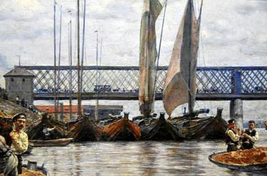 | Keywords: Gierymski Sand miners (detail).JPG Artwork Creator Aleksander Gierymski 1887 oil canvas Institution National Museum Warsaw accession number object history credit line own BurgererSF See below PD-old-100 DEFAULTSORT 1887; Sand miners Paintings by Aleksander Gierymski in the National Museum in Warsaw Vistula in art Kierbedź Bridge Warsaw in the 1880s |