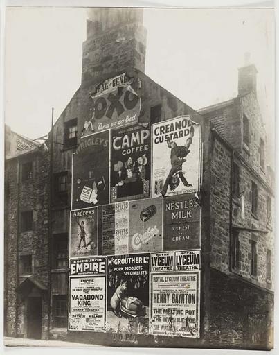 | Keywords: scotland edinburgh southside tenements buildings street houses national library alfred henry rushbrook alfredhenryrushbrook alfred henry rushbrook city of edinburgh improvement trust cityofedinburghimprovementtrust improvement trust 1929 st leonards saint leonards saintleonards st leonards stleonards nls nestle nestle's milk nestlesmilk camp coffee campcoffee wrigley's wrigleys andrews liver salt andrewsliversalt advertising advertisement advertisements building architecture Photograph of a three storey tenement building covered in eleven large poster advertisements. The posters cover one entire side of the building and are for a variety of different products. On the right there is a washing line with some laundry hanging from it. Some of the posters are simply text eg. Edinburgh Empire, while others include images eg. Camp Coffee. Permanent URL: digital.nls.uk/pageturner.cfm?id=74506960 From Photographs of the southside of Edinburgh , Scotland. Taken by Alfred Henry Rushbrook in 1929 for the City of Edinburgh Improvement Trust. Photograph of a three storey tenement building covered in eleven large poster advertisements. The posters cover one entire side of the building and are for a variety of different products. On the right there is a washing line with some laundry hanging from it. Some of the posters are simply text eg. Edinburgh Empire, while others include images eg. Camp Coffee. Permanent URL: digital.nls.uk/pageturner.cfm?id=74506960 From Photographs of the southside of Edinburgh , Scotland. Taken by Alfred Henry Rushbrook in 1929 for the City of Edinburgh Improvement Trust. |