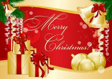 Keywords: gift present card christmas holiday bells christmas balls ribbon sparkling ornaments red gold greetings