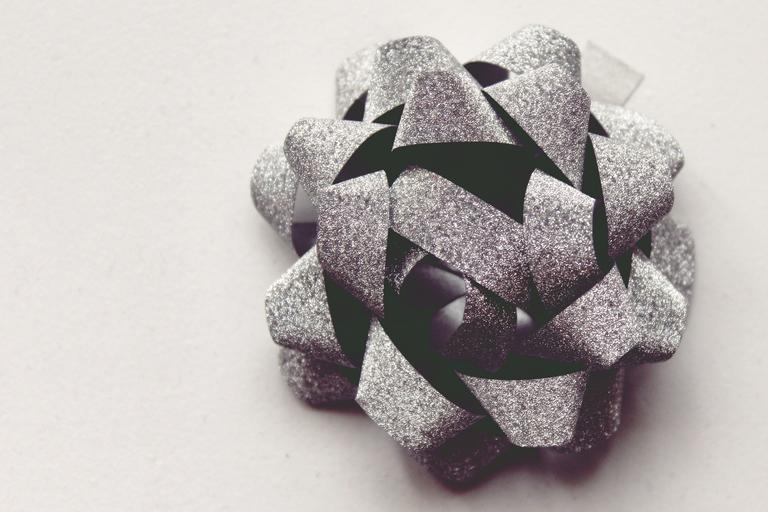 Keywords: gift rosette gift tape loop christmas christmas time decoration packaging ornament gift holidays silver shine gloss decorate geschenkschleife gift flower noble sparkle