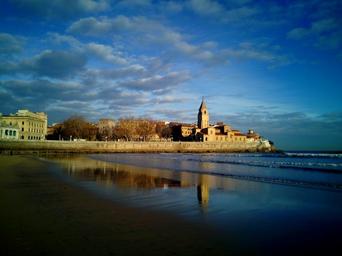 Keywords: gijón asturias spain iglesia san pedro san pedro sea beach tourism sky clouds nature landscape costa water beach sand edge of the sea city sky blue sand