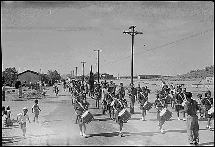 | Keywords: u.s. national archives usnationalarchives fourth of july fourthofjuly independence day independenceday nara:arcid=539573 japanese-american internment japaneseamericaninternment internment marching band marchingband japanese relocation holiday parade arizona war gila river relocation center gilariverrelocationcenter rivers, arizona riversarizona rivers girl scouts drum and bugle corps girlscoutsdrumandbuglecorps 4th of july parade 4thofjulyparade national holiday nationalholiday segregation war relocation authority warrelocationauthority world war ii worldwarii japanese-americans japaneseamericans children bands marching girl scouts girlscouts blackandwhite monochrome outdoor black and white Original Caption: Gila River Relocation Center, Rivers, Arizona. Girl Scouts Drum and Bugle Corp. participate in the 4th of July parade.  U.S. National Archives’ Local Identifier:  210-G-G717  From:: Central Photographic File of the War Relocation Authority, compiled 1942 - 1945  Created By:: Department of the Interior. War Relocation Authority. (02/16/1944 - 06/30/1946)  Production Date: 07/04/1944  Persistent URL:  arcweb.archives.gov/arc/action/ExternalIdSearch?id=539573  Repository:  Still Picture Records Section, National Archives at College Park (College Park, MD)  For information about ordering reproductions of photographs held by the Still Picture Unit, visit: www.archives.gov/research/order/still-pictures.html  Reproductions may be ordered via an independent vendor. NARA maintains a list of vendors at www.archives.gov/research/order/vendors-photos-maps-dc.html       Access Restrictions: Unrestricted Use Restrictions: Unrestricted  Original Caption: Gila River Relocation Center, Rivers, Arizona. Girl Scouts Drum and Bugle Corp. participate in the 4th of July parade.  U.S. National Archives’ Local Identifier:  210-G-G717  From:: Central Photographic File of the War Relocation Authority, compiled 1942 - 1945  Created By:: Department of the Interior. War Relocation Authority. (02/16/1944 - 06/30/1946)  Production Date: 07/04/1944  Persistent URL:  arcweb.archives.gov/arc/action/ExternalIdSearch?id=539573  Repository:  Still Picture Records Section, National Archives at College Park (College Park, MD)  For information about ordering reproductions of photographs held by the Still Picture Unit, visit: www.archives.gov/research/order/still-pictures.html  Reproductions may be ordered via an independent vendor. NARA maintains a list of vendors at www.archives.gov/research/order/vendors-photos-maps-dc.html       Access Restrictions: Unrestricted Use Restrictions: Unrestricted   |