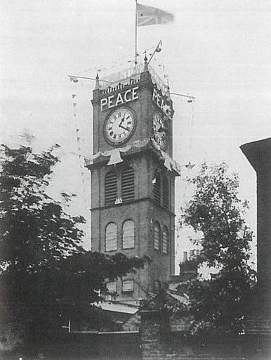 Keywords: Gillett & Johnston tower.jpg en Clocktower of Gillett Johnston bell foundry Union Road Croydon England decorated for peace celebrations at the end of the First World War c1919 2016-04-21 11 53 06 Scanned from Christine Corner The Changing Face of Croydon Stroud Sutton Publishing 1999 p 26 Unknown photographer 1919 other versions PD-old-70-1923 Gillett Johnston Clock towers in London Union Road Croydon Buildings in the London Borough of Croydon |