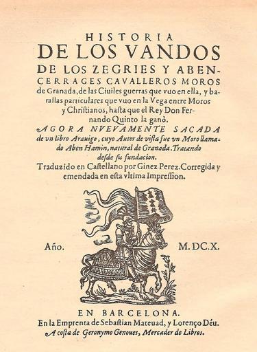 | Keywords: Gines Perez de Hita Titul.jpg en The title page of Historia de los vandos de los Zegríes y Abencerrajes Ginés Pérez de Hita Barcelona 1610 ru Хинес Пе ес де Ита Повесть о Сег и и Абенсе ахах мав итанских ыца ях из Г анады Титульный лист Издание 1610 года Ба селона es La portada de Historia de los vandos de los Zegríes y Abencerrajes Ginés Pérez de Hita Barcelona 1610 Сделал сам Авто книги Хинес Пе ес де Ита Книга издана в 1610-ом году PD-old Ginés Pérez de Hita Title pages from Spain Spanish language literature |