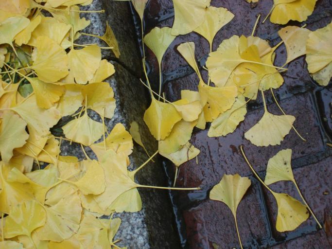 Keywords: Gingko.jpg Autumn Gingko Leaves Own fall 2006 MT Innes Public Domain Image Yellow Ginkgo biloba leaves