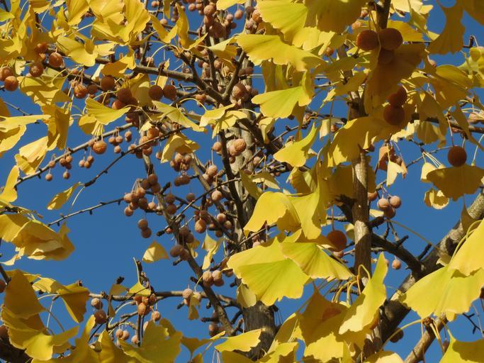 Keywords: ginkgo biloba ginkgo maidenhair tree leaves fruits foliage flora botany tree plant