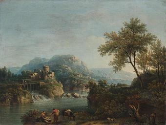 | Keywords: Giovanni Battista Cimaroli - Paesaggio fluviale con figure e un asino.jpg Artwork Creator Giovanni Battista Cimaroli oil canvas cm 73 5 96 object history langSwitch private collection Europe Europäische Privatsammlung credit line accession number http //www dorotheum com/auktionen/auktion-10313-alte-meister html no_cache 1 obj 50 offset 6 Dorotheum Wien 15 10 2013 Auktion 10313 Lot 616 PD-old-100 Giovanni Battista Cimaroli 18th-century landscape paintings Images from Dorotheum | ||||