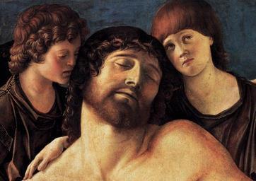 | Keywords: Giovanni bellini, pietà di berlino 02.jpg Artwork Creator Giovanni Bellini Dead Christ Supported by Two Angels other date between 1480 1485 Tempera poplar panel Institution Gemäldegalerie Berlin object history credit line accession number WGA link 1685 http //www wga hu/art/b/bellini/giovanni/1480-89/097dead1 jpg http //www wga hu/html/b/bellini/giovanni/1480-89/097dead1 html PD-old-100 painting religious Italian 1451-1500 WGA form painting WGA type religious WGA School Italian WGA time period 1451-1500 Pietas by Giovanni Bellini Italian Renaissance paintings in the Gemäldegalerie Berlin 15th-century paintings of the Pietà |