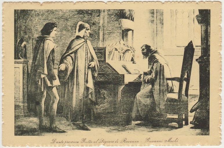 Keywords: Giovanni Mochi - Dante presenta Giotto al Signore di Ravenna.jpg Dante presenta Giotto al Signore di Ravenna 1916 http //www ebay it/itm/DANTE-PRESENTA-GIOTTO-AL-SIGNORE-DI-RAVENNA-GIOVANNI-MOCHI-1916-/380531167390 eBay it “ http //i ebayimg com/00/s/Njc4WDEwMjQ / T2eC16JHJGkE9no8gIzvBQv6QK20H ~~60_57 JPG image author other versions Giovanni Mochi - Dante Alighieri in atto di presentare Giotto a Guido da Polenta jpg Custom license marker 2014 11 03 Anonymous-EU Uploaded with UploadWizard 1916 postcards of Italy Postcards of famous people in Italy Giovanni Mochi Dante Alighieri in art Giotto di Bondone Guido da Polenta Presentation in art Middle Ages in art Postcards of art |
