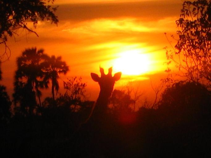 Keywords: Girafe sunset.JPG Girafe seen at sunset time Botswana 16/04/2006 2006-04-16 own assumed Benjism89 Giraffa camelopardalis angolensis Sunsets of Botswana Orange sunsets Animals at sunset
