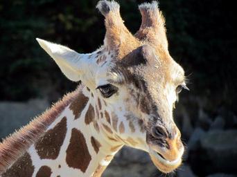 Keywords: giraffe portrait head face mammal mouth ears cute looking eyes pattern zoo enclosure captive close up