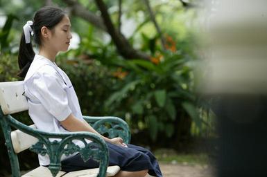 Keywords: girl asian sitting bench park thailand asia relax calm peaceful woman relaxed