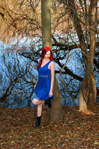 Keywords: girl autumn forest lake red hair beauty vegetation