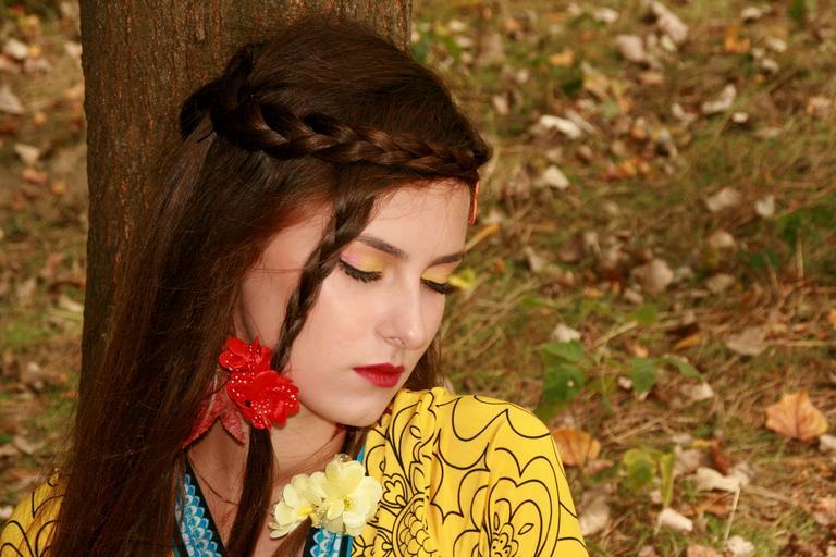 Keywords: girl autumn leaves portrait vegetation beauty seductive yellow