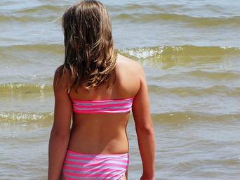 Keywords: girl beach water kids pink young female lifestyle vacation