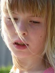 Keywords: girl blond face thoughts wind mouth skin child eyes lips head