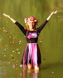 Keywords: girl blonde wreath water petals joy nature