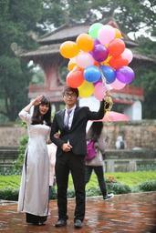 Keywords: girl boy couple asian balloons woman asia man bride groom rain