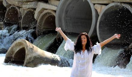 Keywords: girl cascada white shirt sensual summer waves water nature seduction beauty brunette