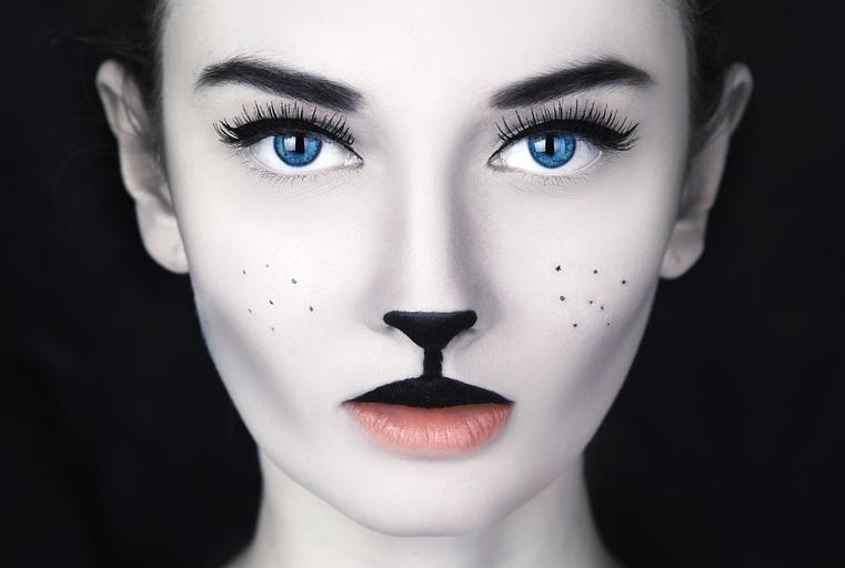 Keywords: girl cat kitten fashion catwoman model makeup portrait