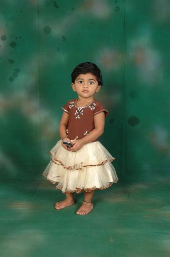 Keywords: girl child cute green background standing kid childhood frocks looking young small people portrait innocence innocent