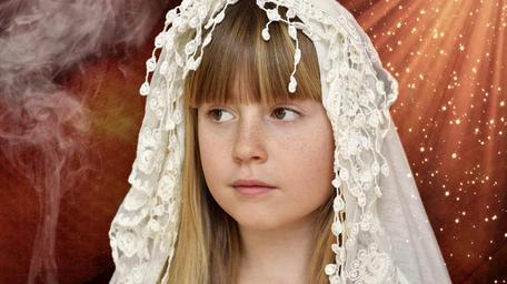 Keywords: girl child face headscarf smoke