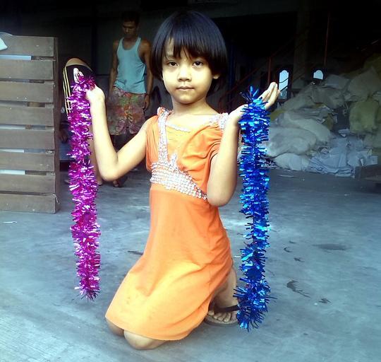 MAKE A MEME View Large Image girl child orange dress streamers purple pink blue