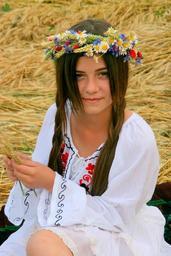 Keywords: girl child peasant woman traditional suit wreath summer grau