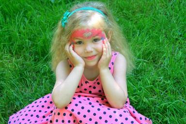 Keywords: girl child smile grass blond hair portrait beauty