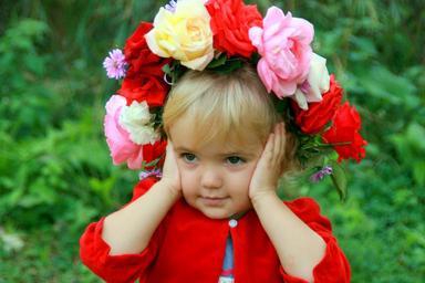 Keywords: girl child wreath rose red coloring portrait innocence beauty