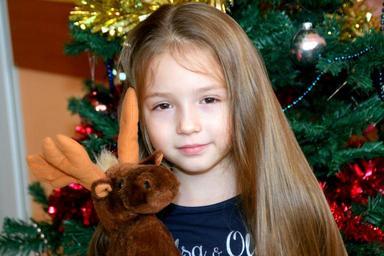 Keywords: girl christmas christmas tree tinsel decorations reindeer toy