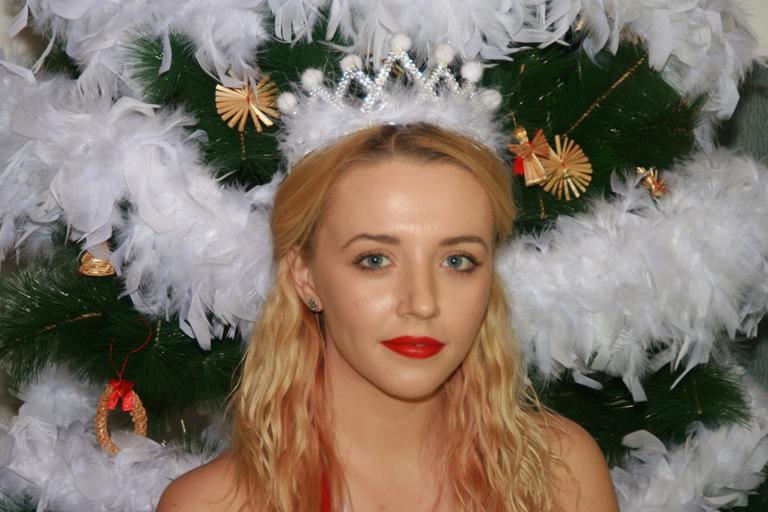 Keywords: girl christmas tree wreath snowflakes white christmas decorations tinsel holidays