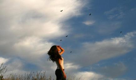 Keywords: girl cloud birds sky autumn beauty