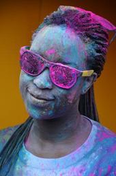 Keywords: girl colorful funny celebration happy party festival summer color run festivals person young pretty green face portrait female woman painted holi holi festival happy holi glasses sun glasses happy holi festival