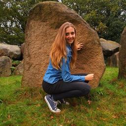 Keywords: girl curl up stone ancient times hair head face laugh fun blonde blue nature