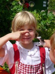 Keywords: girl dirndl bavarian oktoberfest costumes dress bavaria red white funny good mood fun face play