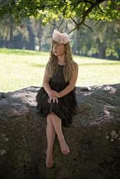 Keywords: girl dress haarschleife out nature summer long hair portrait human black dress barefoot person