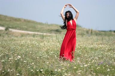 Keywords: girl dress red plain wind beauty sensuality