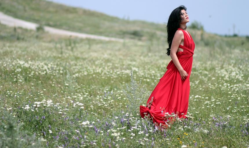 Keywords: girl dress red plain wind beauty sensuality