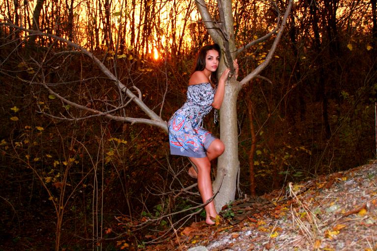 Keywords: girl forest sunset wild autumn vegetation nature beauty