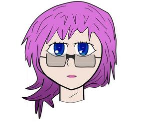 Keywords: girl glasses graphic head purple hair animated eyes manga woman color face purple comic