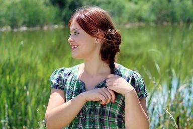 Keywords: girl green eyes lake green nature beauty red hair