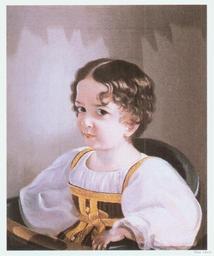 | Keywords: Girl in chair by Fedor Tulov (1842, Russian museum).jpeg По т ет девочки сидящей в к есле 1842 Холст масло 28 х 23 Сп ава внизу подпись и дата смот и скани ованный текстедо ъ Туловъ / 1842 года / П опойскъ а ве хней планке под амника я лык с надписью Ж-11364 Тулов Ф А 1792-1855 По т ет девочки сидящей в к есле 2 пол 1840-х П иём 24461 13 12 Выдача /28x23 Рестав ато Киселёва A / П отокол комиссии о п иёме на естав ацию Поступил в 1986 от Л Шиф ина Ленинг ад Поскольку местечко П опойск ныне го од Славго од п инадлежало двою одному б ату А X Бенкендо фа Александ у Ивановичу Бенкендо фу 1800-1873 можно п едположить что на по т ете изоб ажена одна из восьми его доче ей Если сопоставить воз аст девочки и год написания по т ета то наиболее ве оятными п едставляются две кандидату ы а ия Александ овна одилась 18 07 1833 34 - впоследствии суп уга иколая Дмит иевича К опоткина и Александ а Александ овна одилась 07 03 1835 - впоследствии жена Пет а Пет овича у омцева http //www tez-rus net/ViewGood37794 html century 19 Fedor Tulov Fedor Tulov Files uploaded by Shakko from various sources Portrait paintings of girls from Russia Portrait paintings of unidentified women of Russia PD-Art House of Benckendorff 1840s portraits of Russia female 19th-century portraits in the Russian Museum |