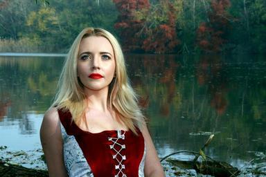 Keywords: girl lake autumn tree reflection red blond forest