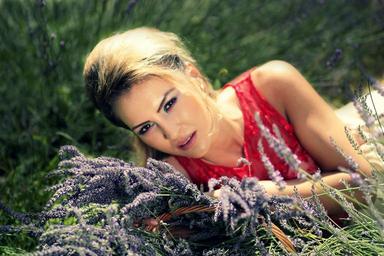 Keywords: girl lavender blonde portrait flower red sensual seductive