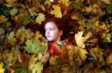 Keywords: girl leaves autumn yellow portrait red hair redhead beauty child